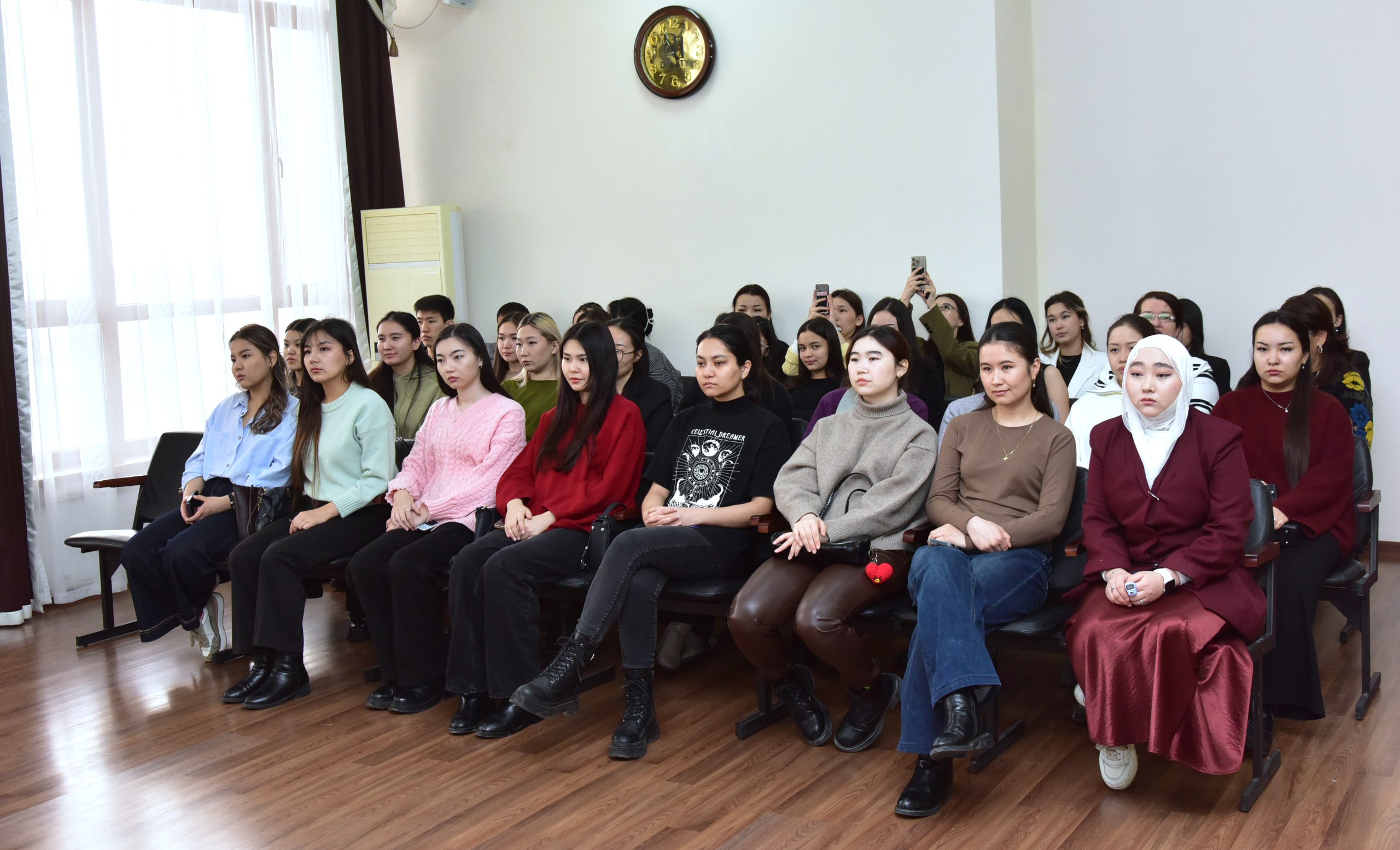 Басқарма Төрағасы – Ректор Ләззат Еркінбаева сөз алып, жоғары оқу орны тек білім берумен шектелмей, елдік маңызы бар бастамалардың бел ортасында жүретінін айрықша атап өтті. Ол университет қабырғасында қалыптасатын азаматтық көзқарас пен парасатты пайым мемлекет дамуына қызмет етуі тиіс екенін жеткізді. Сонымен қатар, студент жастардың құқықтық мәдениетін нығайту, сыни ойлау қабілетін дамыту – білім ордасының басты міндеттерінің бірі екенін жеткізді. Жас буынды ел тағдырына қатысты шешімдерге саналы түрде қарап, жауапкершілік пен отансүйгіштік танытуға үндеді.