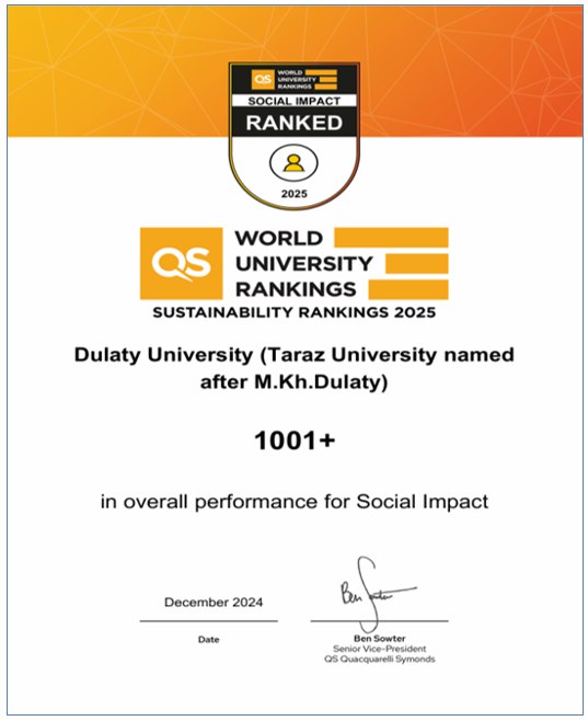 ДУЛАТИ УНИВЕРСИТЕТІ: QS 2025 ОРНЫҚТЫ ДАМУ РЕЙТИНГІНДЕ ҚАЗАҚСТАНДЫҚ ЖОҒАРЫ ОҚУ ОРЫНДАРЫ АРАСЫНДА КӨШБАСШЫ!