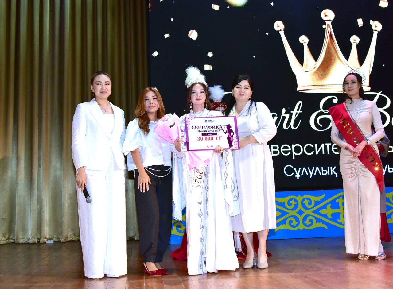 Университет қабырғасында «SMART & BEAUTIFUL: УНИВЕРСИТЕТ АРУЫ – 2025» атты сұлулық байқауы ұйымдастырылды. Бұл кеш сұлулық пен өнер, ақыл мен парасат тоғысқан ерекше сайысқа айналды.