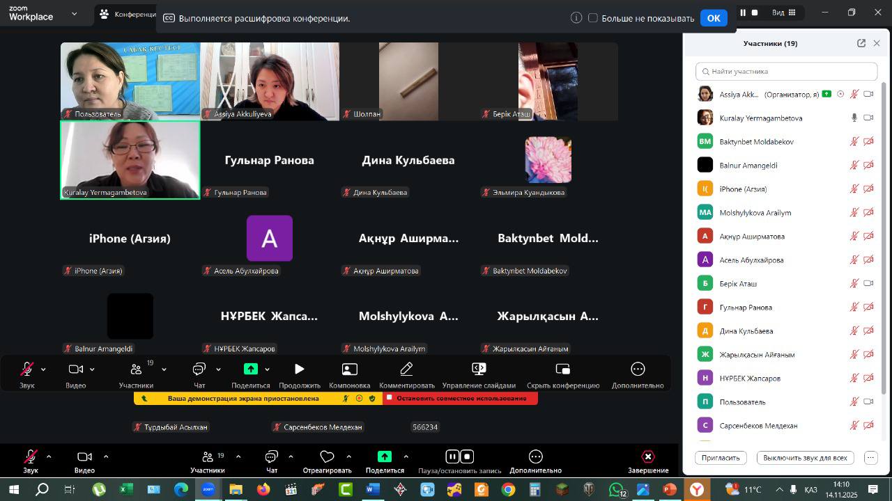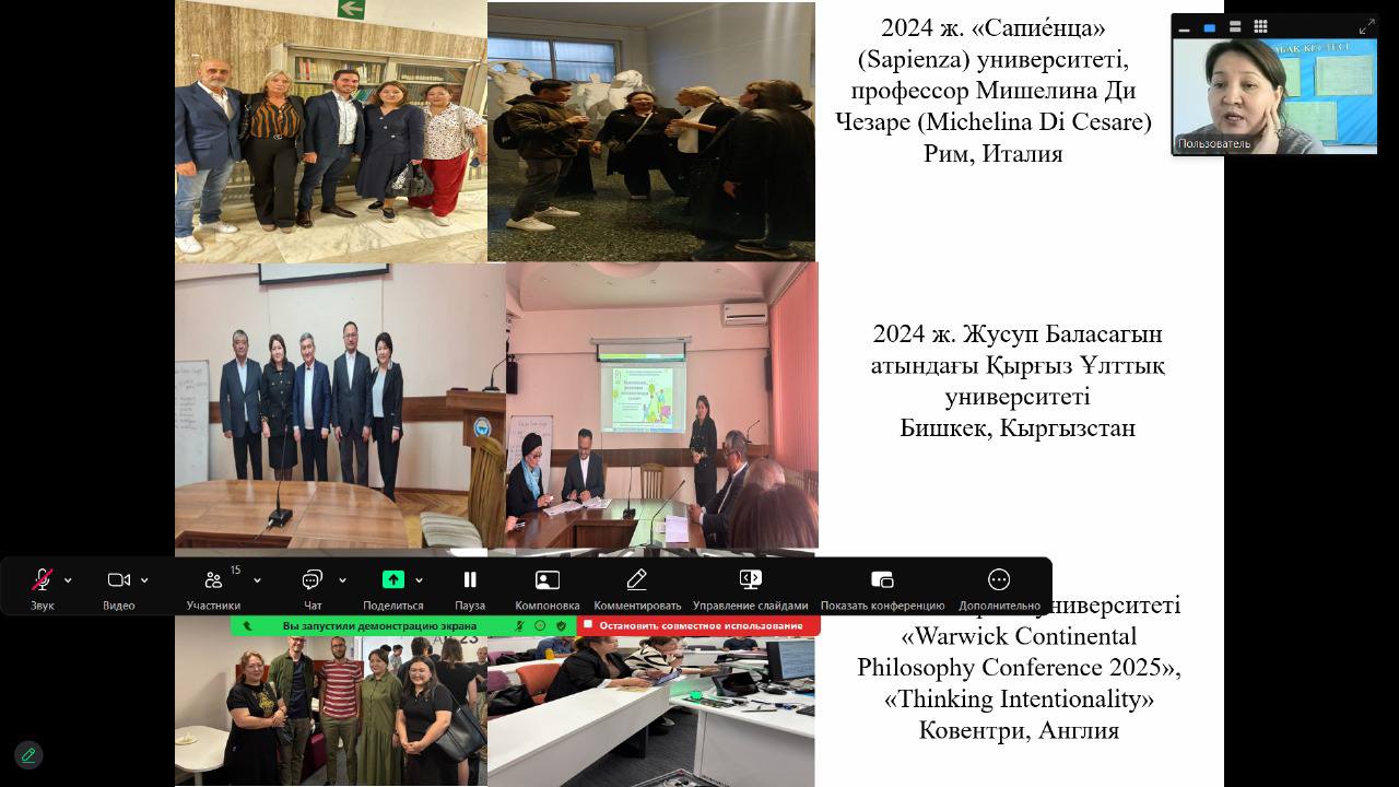 Модератор семинара-Ермагамбетова Куралай Сергабыловна, опытный философ, квалифицированный специалист в области образования. Она занимается научно-исследовательской работой по направлениям практической философии, этики и современной методологии образования. Куралай Сергабыловна провела семинар на высоком профессиональном уровне, что позволило провести содержательную и эффективную дискуссию между докладчиками и слушателями. Его модераторская деятельность повысила научный уровень мероприятия и укрепила дискуссионную культуру. Содержание докладов Куранбек Асет Абаевич Пути формирования P4C, казахстанская модель Обсуждались вопросы адаптации программы "философия для детей" (P4C) к национальному контексту, подчеркивалась важность формирования культуры рефлексивного мышления. Аташ Берик Муратович Методика обучения творческому и критическому мышлению в гуманитарных дисциплинах Спикер предложил методологические подходы, направленные на развитие аналитических навыков современных обучающихся. Нурадин Гульхан Болатовна Практическая философия и интеллектуальная деятельность в движении Высказывались новые взгляды на динамический характер практической философии и ее связь с интеллектуальной деятельностью. Аккулиева Асия Ертаевна Ценности морали и ответственности в эпоху цифровизации. Философски проанализированы моральный выбор, цифровая этика и новые формы ответственности в цифровом обществе.